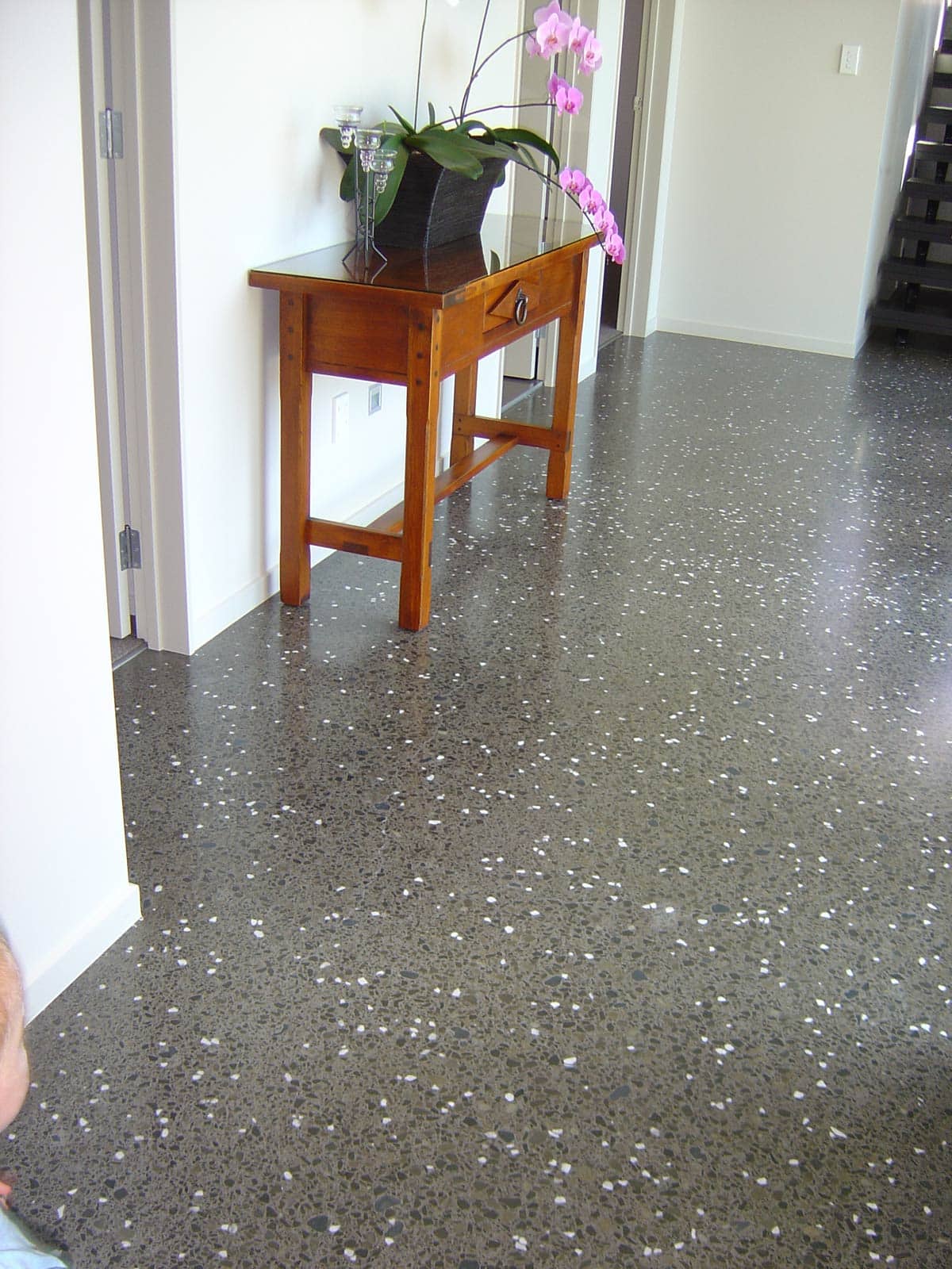 Polished concrete has become a popular flooring choice in both new palatial homes; older homes; batches; workplaces, industry, retail and showrooms as it is practical and versatile flooring solution. Polished concrete provides a classic look featuring clean lines which is durable and easy to clean.