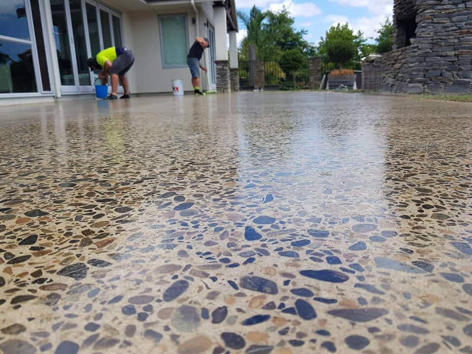 exposes light aggregates and high sheen